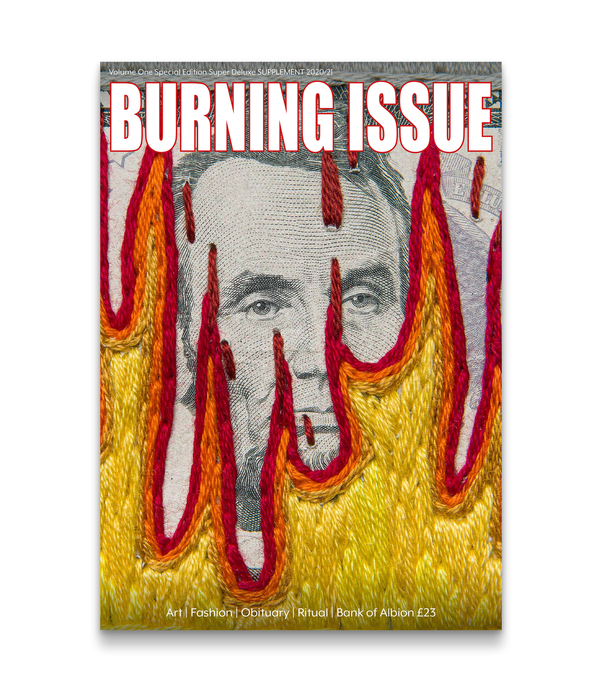 A beautiful 34 page (+ Cover) supplement to the infamous Burning Issue Super Deluxe Magazine features all the Art exhibited at Church of Burn's Festival of Money 2021, plus Fashion and Obituary.